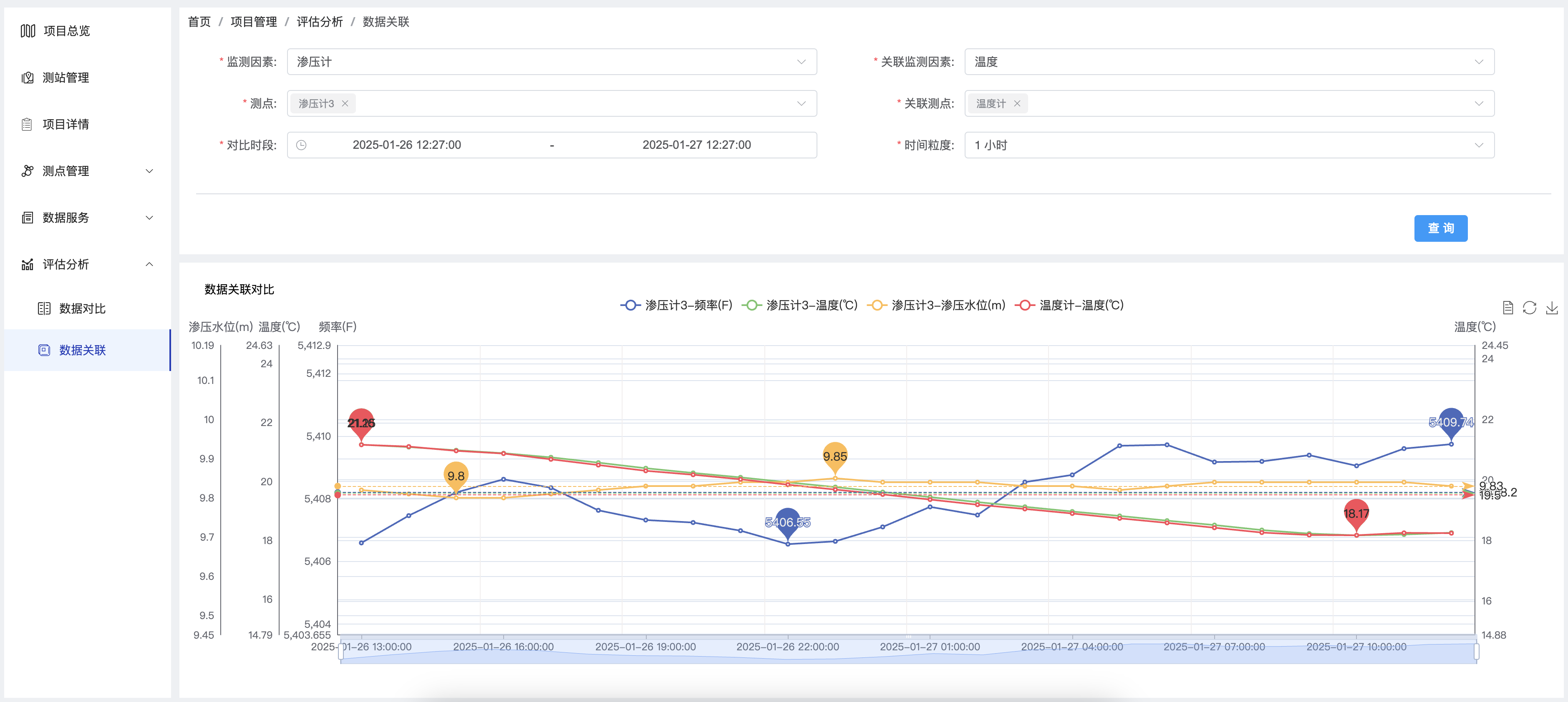 同一监测类型不同测点数据的对比查看